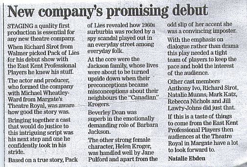 the stage play 'Pack of Lies' (Sep 06).